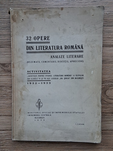 32 opere din literatura romana. Analize literare (1933)
