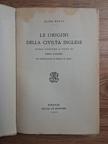 Aldo Ricci - Le origini della civilta inglese (1932)