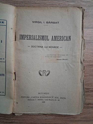Virgil I. Barbat - Imperialismul american. Doctrina lui Monroe (1920)