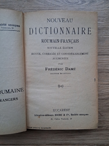 Frederic Dame - Nouveau dictionnaire roumain-francais (1905)