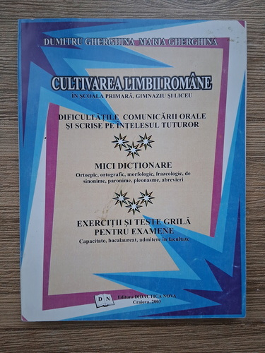Dumitru Gherghina - Cultivarea limbii romane in scoala primara, gimnaziu si liceu. Dificultatile comunicarii orale si scrise pe intelesul tuturor. Mici dictionare. Exercitii si teste grila pentru examene