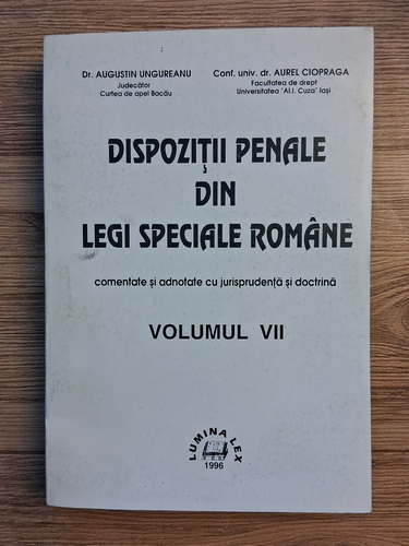 Augustin Ungureanu - Dispozitii penale din legi speciale romane. Comentate si adnotate cu jurisprudenta si doctrina (volumul 7)