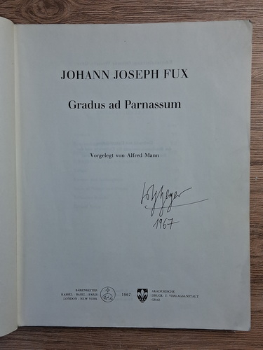 Johann Joseph Fux - Samtliche werke, volumul 7, partea I. Gradus ad Parnassum