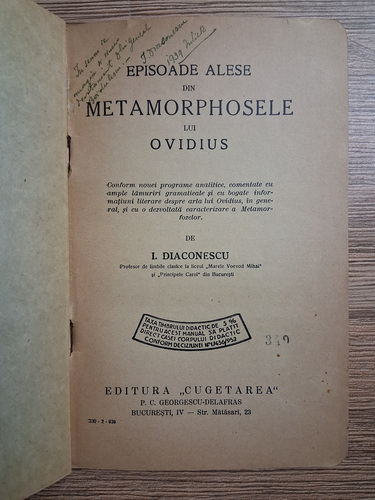 I. Diaconescu - Episoade alese din metamorphosele lui Ovidius (1936)