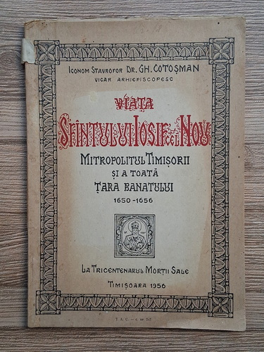 Gheorghe Cotosman - Viata sfantului Iosif cel Nou, mitropolitul Timisorii si a toata Tara Banatului, 1650-1656. La tricentenarul mortii sale