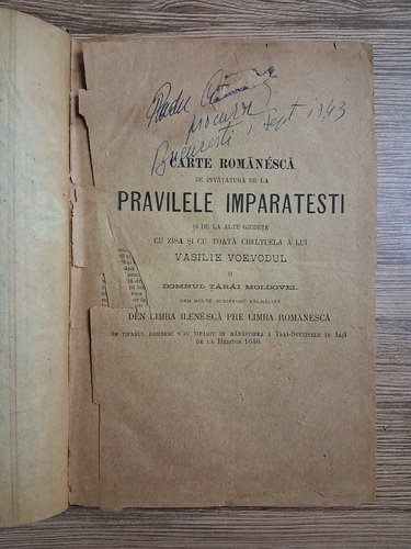 Titlu: Carte Romaneasca de invatatura de la pravilele imparatesti si de la alte giudete (aprox. 1900, lipsa pagina de titlu)