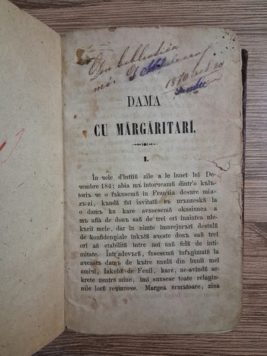 Titlu: Dama cu margaritari (2 volume colegate, lipsa pagina titlu volumul 1, 1856)