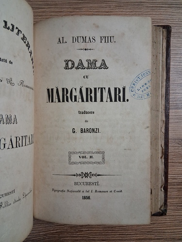 Alexandre Dumas Fiul - Dama cu margaritari (2 volume colegate, lipsa pagina titlu volumul 1, 1856)