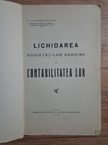 C. G. Demetrescu - Lichidarea societatilor anonime si contabilitatea lor (1930)