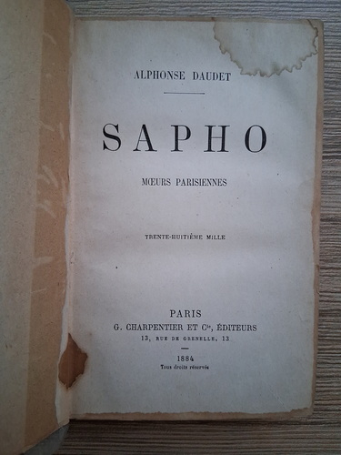 Titlu: Sapho, moeurs parisiennes (1884, uzata)