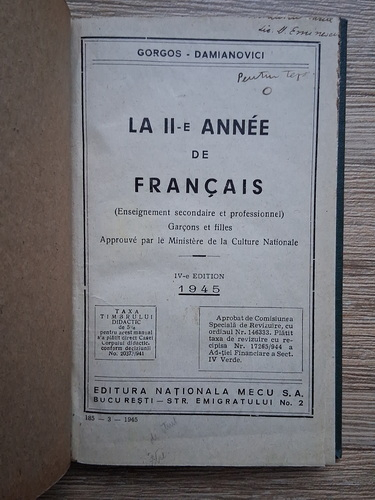 Gorgos Damianovici - La II-e annee de francais (1945)