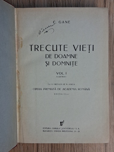 Titlu: Trecute vieti de doamne si domnite (3 volume, 1941)