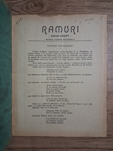 Revista Ramuri, drum drept (47 numere colegate pe anul 1922)