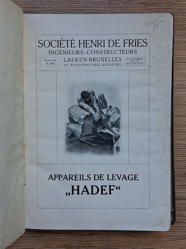 Titlu: Appareils de Levage Hadef. Societe Henri de Fries, Laeken-Bruxelles (1920 aprox.)