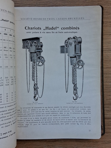 Appareils de Levage Hadef. Societe Henri de Fries, Laeken-Bruxelles (1920 aprox.)