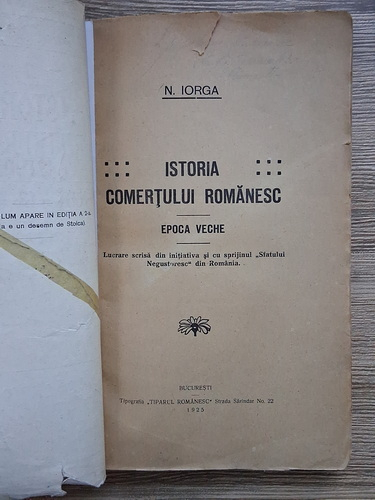 Nicolae Iorga - Istoria comertului romanesc (2 volume, 1925, putin uzate)