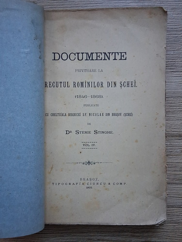 Stere Stinghe - Documente privitoare la trecutul romanilor din Schei, 1846-1868 (volumul 4, 1903, uzata)