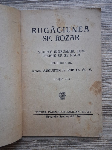 Rugaciunea Sf. Rozar. Scurte indrumari, cum trebue sa se faca (1944, uzata)