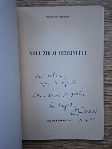 Nicolae Dan Fruntelata - Noul zid al Berlinului (cu autograful autorului)