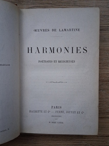 Titlu: Oeuvres de Lamartine. Harminies. Poetiques et religieuses (1879)