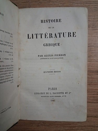 Titlu: Histoire de la litterature grecque (1867)