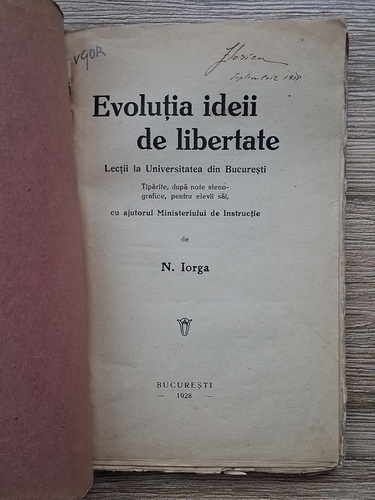 Nicolae Iorga - Evolutia ideii de libertate (1928)