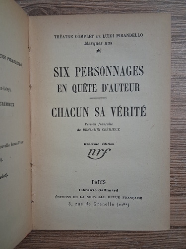 Titlu: Six personnages en quete d'autor. Chacun sa verite (1923)