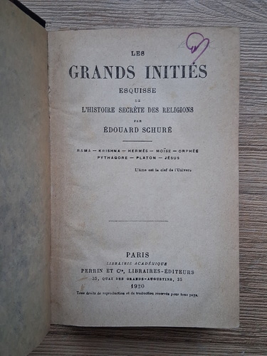Titlu: Les grands inities esquisse de l'histoire secrete des religions (1920)