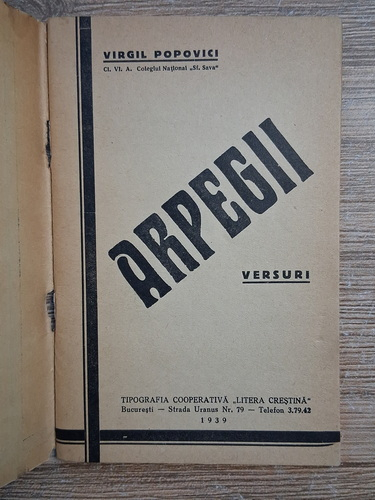 Virgil Popovici - Arpegii (cu autograful autorului, 1939)