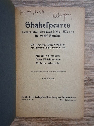 Titlu: Shakespeares sammtliche dramatische werke (volumele 4-6 colegate)
