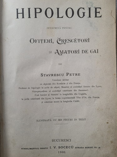 Stavrescu Petre - Hipologie intocmita pentru ofiteri, crescatori si amatori de cai (1900)