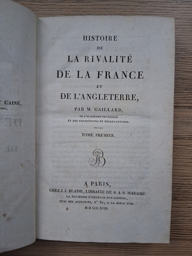 Titlu: Histoire de la rivalite de la France et de l'Angleterre (volumele 1, 2, 3, 5, 6, 1818)