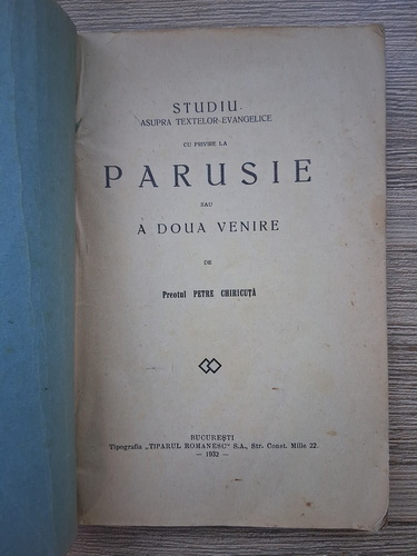 Petre Chiricuta - Studii asupra textelor Evangelice cu privire la Parusie sau a doua venire (1935)