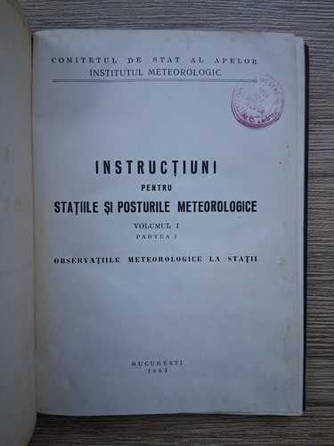 Titlu: Instructiuni pentru statiile si posturile meteorologice, volumul 1, partea I. Observatiile meteorologice la statii
