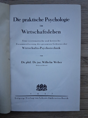 Titlu: Die praktische psychologie im wirtschaftsleben (1927)