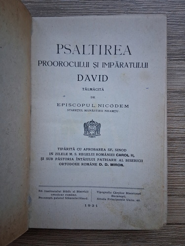 Psaltirea Proorocului si Imparatului David talmacita de Episcopul Nicodem (1931)