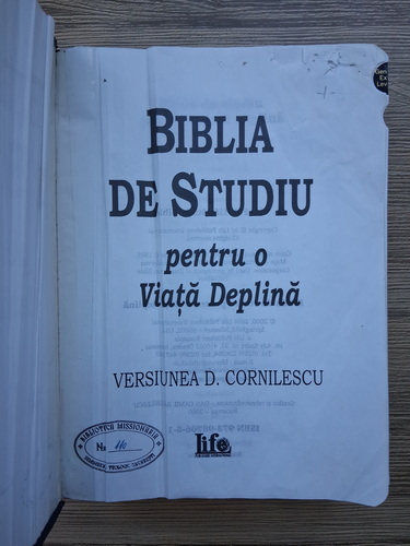 Titlu: Biblia de studiu pentru o viata deplina. Versiunea D. Cornilescu (putin uzata)