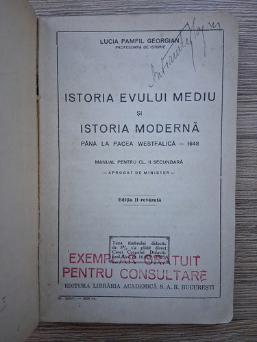 Lucia Pamfil Georgian - Istoria Evului Mediu si istoria moderna pana la pacea westfalica 1648 (1935)