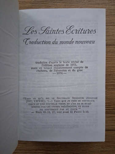 Titlu: Les Saintes Ecritures. Traduction du monde nouveau (1974)