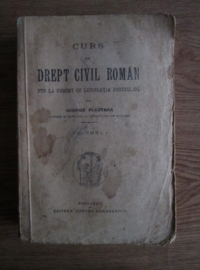 George Plastara - Curs de drept civil roman pus la curent cu legislatia postbelica (volumul 1)